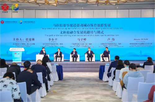 本次论坛进行了圆桌对话,江西省体育局党组书记、局长李小平,河南省体育局党组书记、局长马宇峰,日照市体育局党组书记、局长卢伟,世界田径联合会路跑办公室主任阿莱西奥围绕“马拉松赛事对于带动城市体育旅游的促进与发展”和“文体旅融合发展的路径与模式”两个方向展开探讨,此环节由北京师范大学教授、博士生导师张瑞林主持。