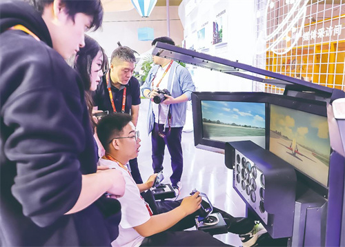 体现荆楚丰富体育旅游资源的互动体验区更是人气爆棚。在钓鱼产业展区,观众可以戴上VR设备,身临其境感受在湖边钓鱼的快乐;在冰雪运动展区,通过复原场景还原了湖北的滑雪赛道,让观众感受在南方滑雪的魅力;在马运动展区,骑上互动装备体验马术的乐趣;在航空运动展区,展示了AS700民用载人飞艇和通用航空飞机模型……让观众仿佛置身于真实的运动场景中。