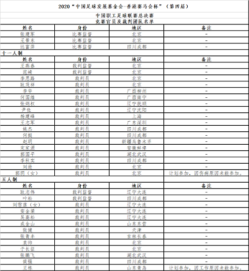 (一)2020“中国足球发展基金会-香港赛马会杯”(第四届)中国职工足球联赛总决赛开幕式流程及嘉宾名单