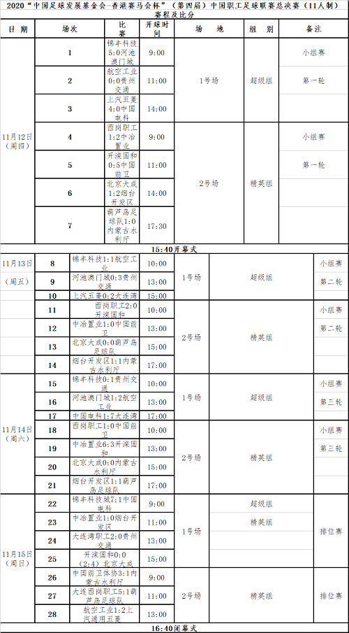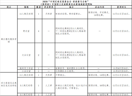 2020“中国足球发展基金会-香港赛马会杯”(第四届)中国职工足球联赛总决赛(以下简称“总决赛”),于11月11日(报到)至11月15日,在四川省都江堰市凤凰体育中心、四川香港马会奥林匹克运动学校举办完毕。
