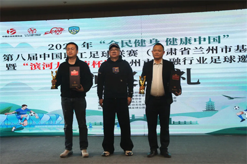兰州市足协常务副主席谢鹏为优秀组织奖颁奖。