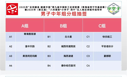 根据往届赛事成绩和排名,组委会将青年组、中年组分别分为四挡和三挡进行分组抽签。在青海职工业余足球联盟秘书长邹忌与抽签嘉宾共同合作下,经历两组抽签仪式,圆满完成了各个组别的分组抽签。并在抽签环节中展示了26支球队的比赛服装。