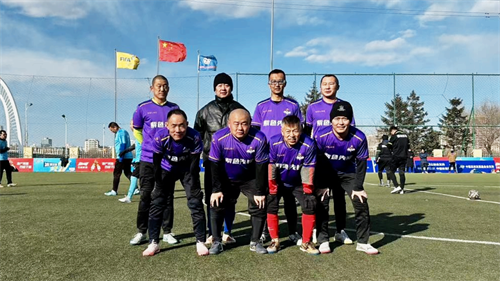 图注:40+组紫色锋豹足球队首发队员赛前合影。