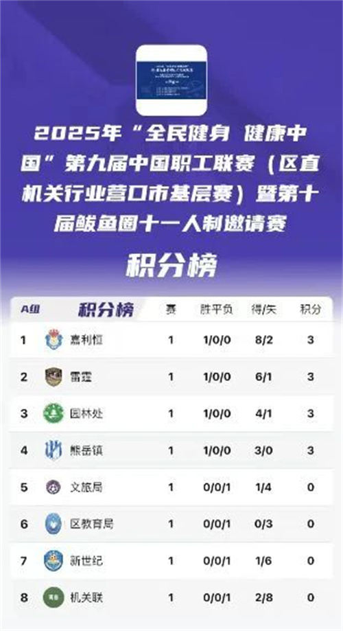 3月23日,2025年“全民健身 健康中国”第九届中国职工联赛区直机关行业营口市基层赛暨第十届鲅鱼圈区十一人制足球邀请赛,在营口市鲅鱼圈区实验学校开赛。赛事共有8支队伍、253名队员参赛,共进行36场比赛。