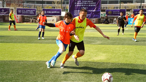 图注:青岛科技大学济南校友队,兴隆1897足球公园校友联队在比赛中。
