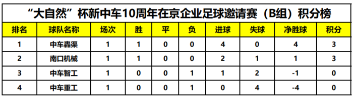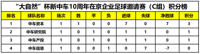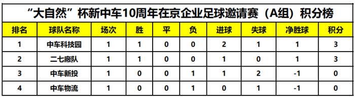 “大自然”杯新中车10周年在京企业足球邀请赛第一轮成绩公告