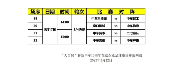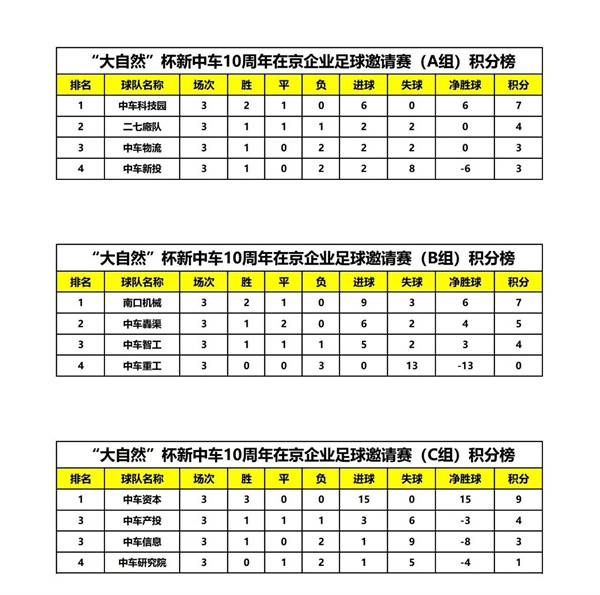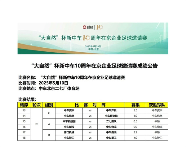 “大自然”杯新中车10周年在京企业足球邀请赛第三轮成绩公告