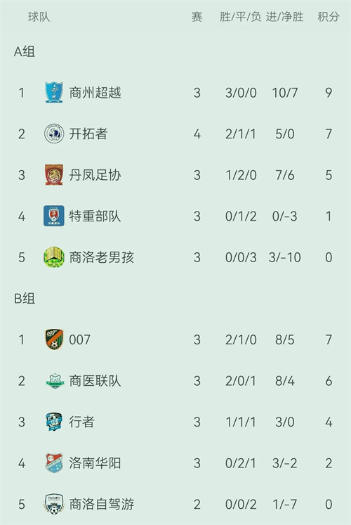 截至目前,已结束的三轮比赛中,商州超越和零零柒分别位列小组第一,两组比赛正进入白热化阶段,最终的小组排名及出线结果仍悬而未决。