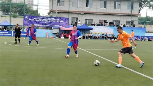 图注:集团机关联(橘色队服)发动进攻,节能供热二公司(蓝红色队服)