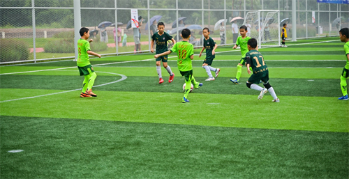 高温场次里,孩子们的球衣被汗水浸透又被烈日晒干,皮肤晒得通红却始终紧盯赛场;大雨降临时,他们在湿滑的场地上保持专注,摔倒后立刻爬起继续拼抢。有学员在赛后说:“跑不动的时候,想起教练说‘团队需要每个人’,就又有了力气。”这种在极端条件下的坚持,正是项目中“挫折教育”“纪律教育”的生动实践——孩子们不仅锻炼了体能,更在与多变天气的对抗中,读懂了“责任”与“毅力”的分量。