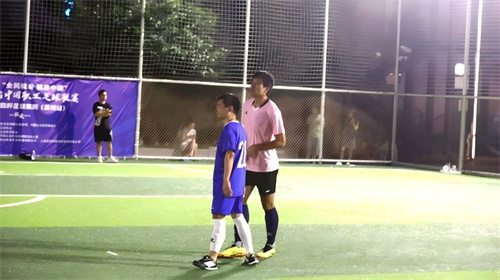 图注:共康东路联(蓝色上衣)与高境物业(粉色上衣)比赛中。