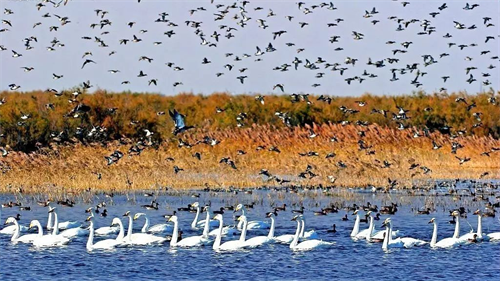湿地内,波光潋滟、芦苇摇曳生姿、水杉层林尽染……生动呈现“赛事+文旅”的深度联动。“体育赛事”与“生态观光”“文化体验”的深度融合,让“跟着赛事去旅游”从理念照进了现实。