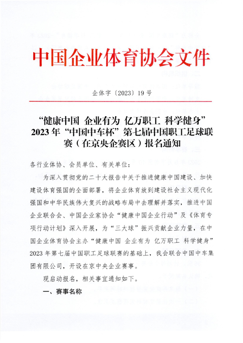 2023“中国中车杯”第七届中国职工足球联赛(在京央企赛区)报名通知