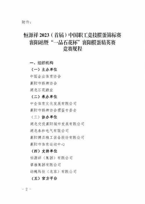 关于举办恒源祥2023(首届)中国职工竞技惯蛋锦标赛襄阳站比赛的通知