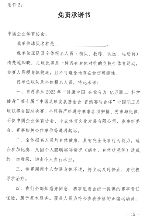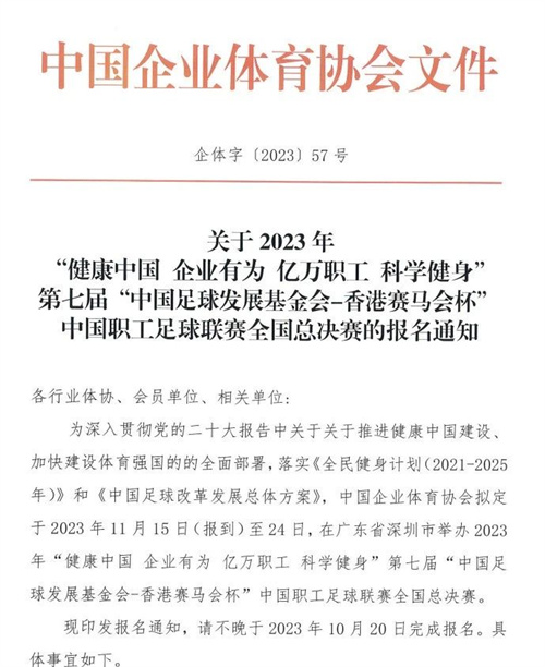 关于2023年第七届“中国足球发展基金会-香港赛马会杯”中国职工足球联赛全国总决赛的报名通知