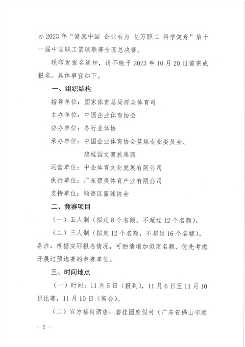 关于2023“健康中国 企业有为 亿万职工 科学健身” 第十一届中国职工篮球联赛总决赛报名的通知