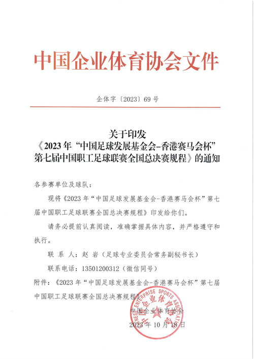 点击下载文件:关于印发《2023年“中国足球发展基金会-香港赛马会杯”第七届中国职工足球联赛全国总决赛规程》的通知