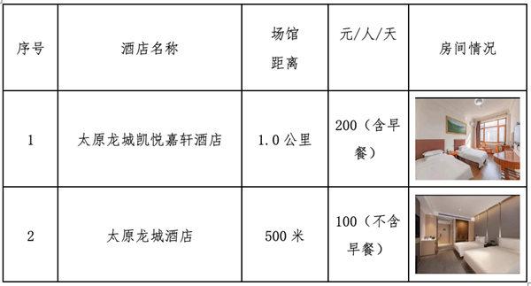 官方指定酒店为太原龙城凯悦嘉轩酒店与太原龙城酒店,参赛队可按需自行选择。请各参赛队确定名单后,尽早与组委会段锦波联系预定房间。