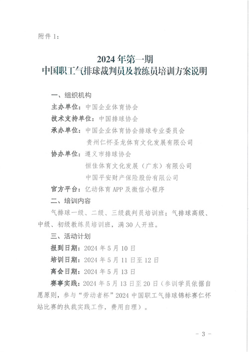 关于举办2024年第一期中国职工气排球 裁判员及教练员培训班的通知