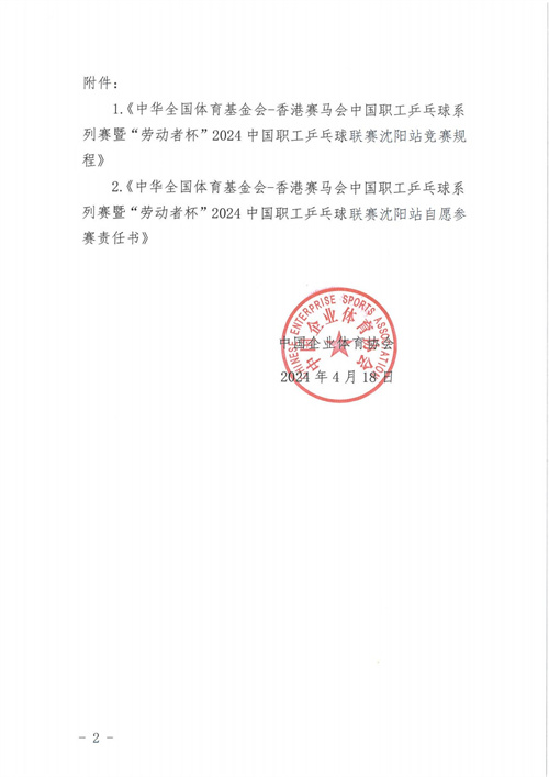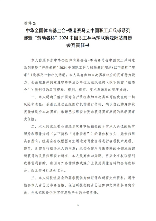 关于举办中华全国体育基金会-香港赛马会中国职工乒乓球系列赛暨“劳动者杯”2024中国职工乒乓球联赛沈阳站的通知