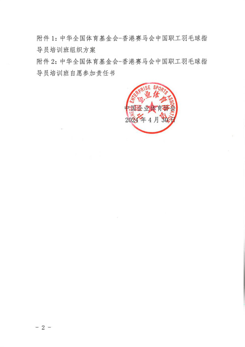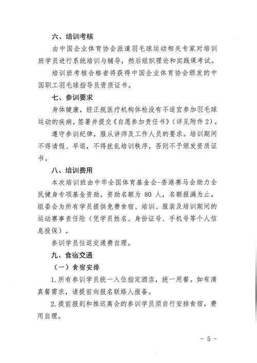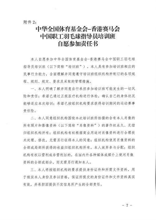 关于举办中华全国体育基金会-香港赛马会中国职工羽毛球指导员培训班的通知