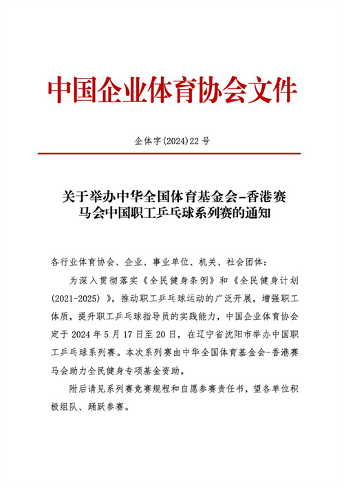 关于举办中华全国体育基金会-香港赛马会中国职工乒乓球系列赛的通知