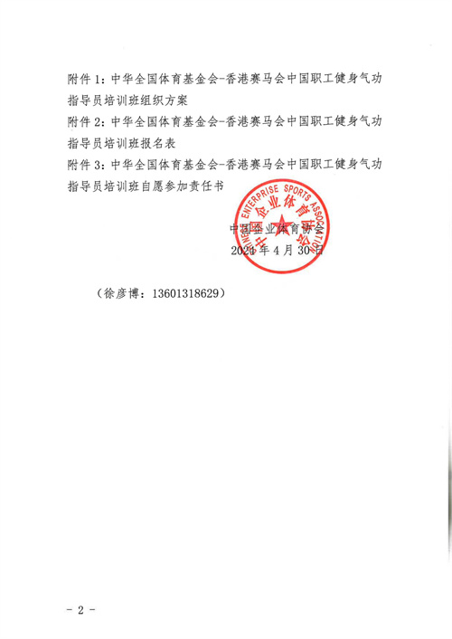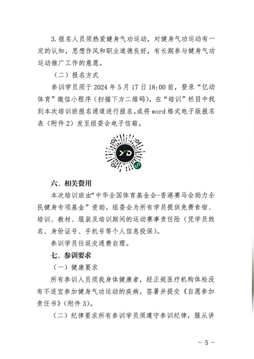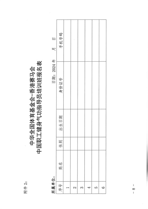 关于举办中华全国体育基金会-香港赛马会中国职工健身气功指导员培训班的通知