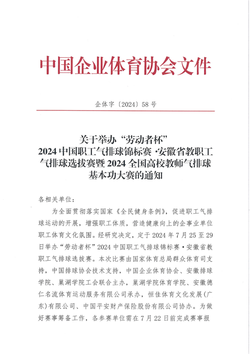 关于举办“劳动者杯”2024中国职工气排球锦标赛 · 安徽省教职工气排球选拔赛暨2024全国高校教师气排球基本功大赛的通知