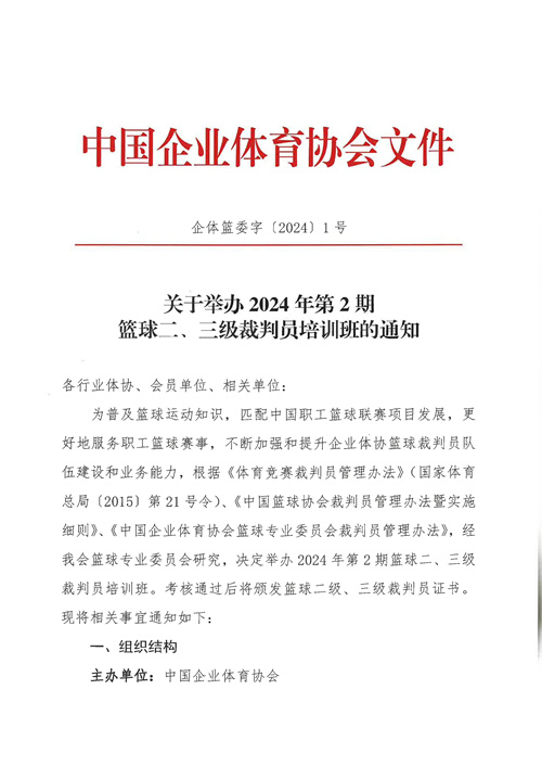 关于举办2024年第2期篮球二、三级裁判员培训班的通知