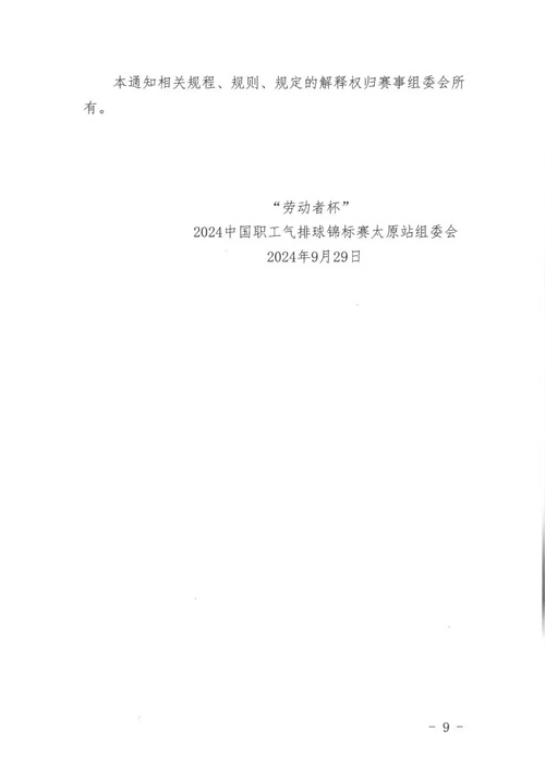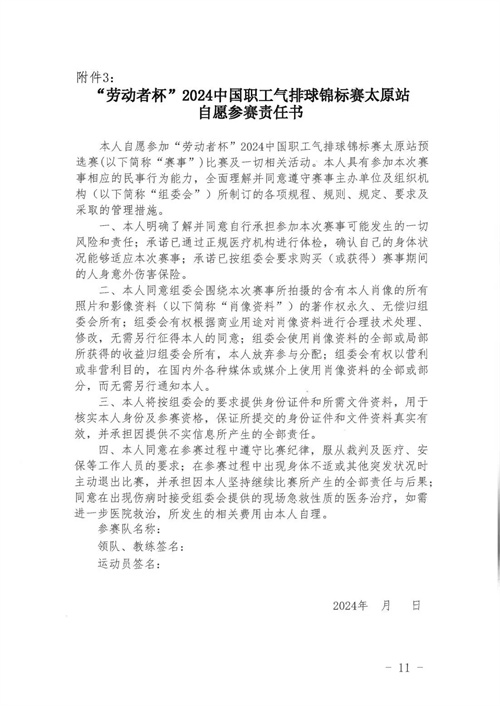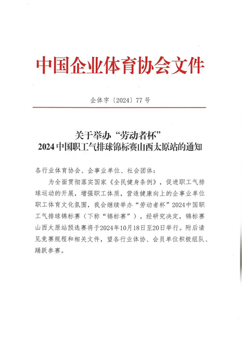关于举办“劳动者杯”2024中国职工气排球锦标赛山西太原站的通知