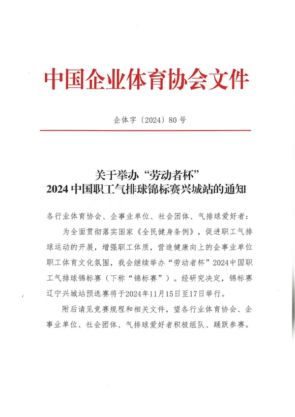 关于举办“劳动者杯”中国职工气排球锦标赛兴城站的通知
