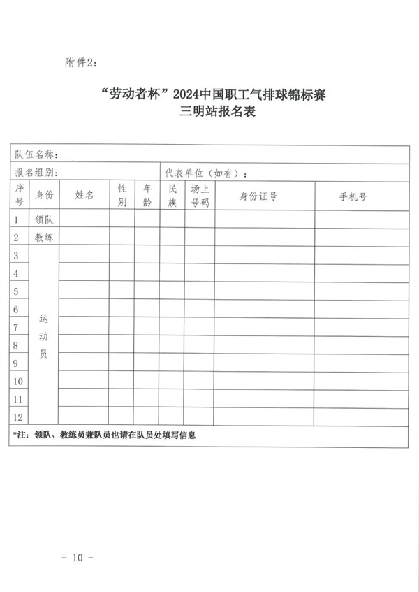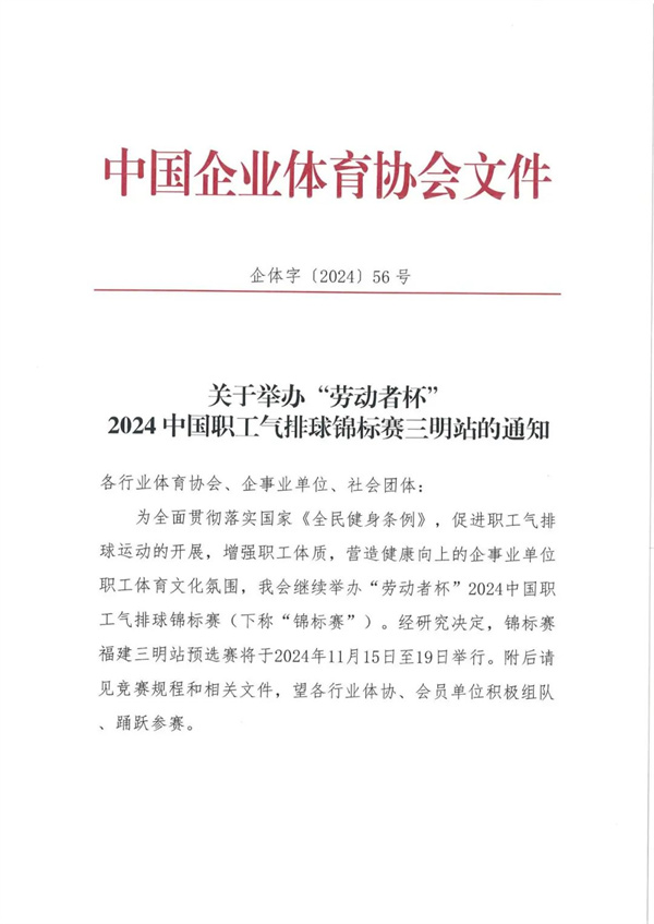 关于举办"劳动者杯"2024中国职工气排球锦标赛三明站的通知