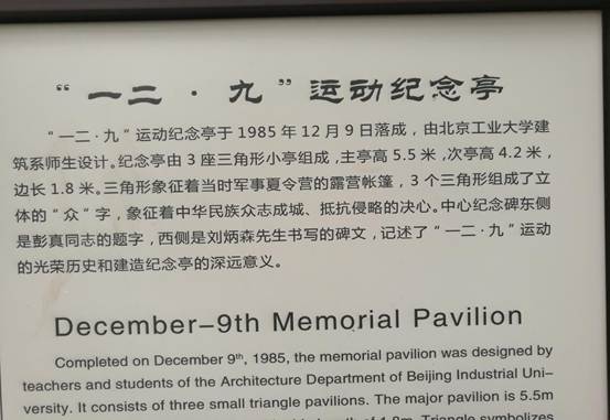 我之所以非要去樱桃沟参观一二•九纪念亭,是与我80年代初在北京团市委、北京市学联的一段工作经历有关,确切点儿说我参加了一二•九纪念亭的筹备、奠基、设计、落成等工作。