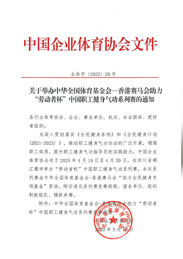 关于举办中华全国体育基金会—香港赛马会助力“劳动者杯”中国职工健身气功系列赛的通知