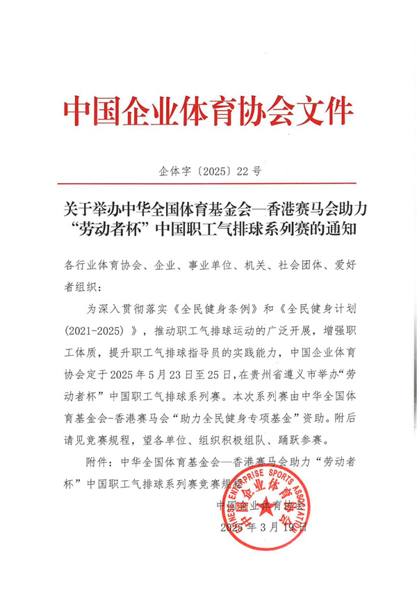 关于举办中华全国体育基金会—香港赛马会助力“劳动者杯”中国职工气排球系列赛的通知