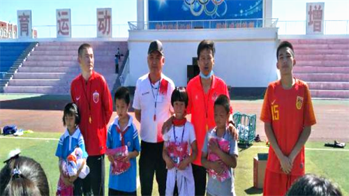 图注:2020年第七师足协走进校园,与孩子们共庆“六一儿童节”。