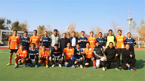 图注:胡杨河军垦新城足球队赛前全体队员合影。