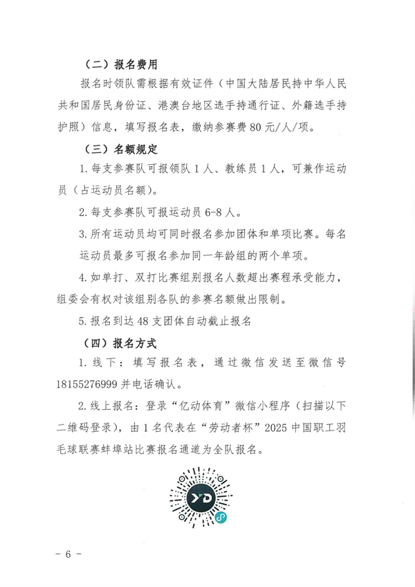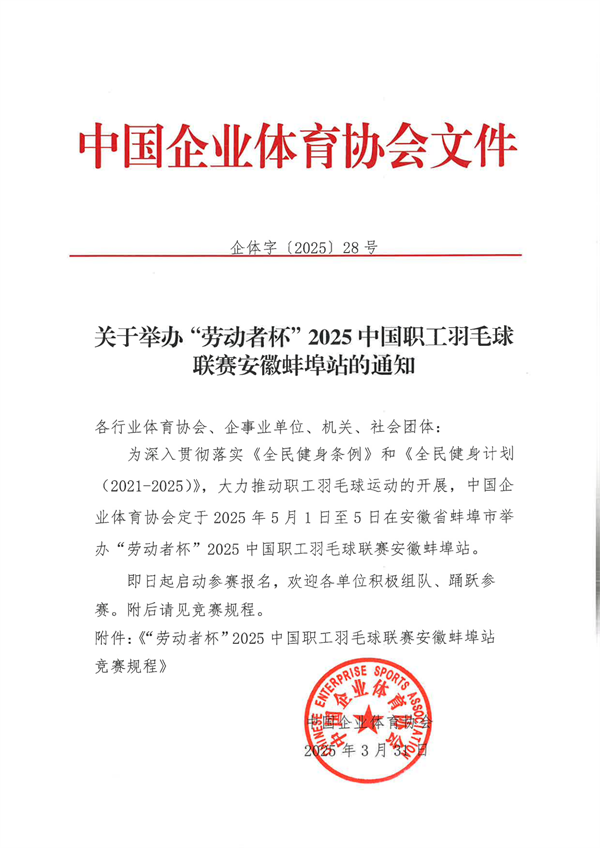 关于举办“劳动者杯”2025中国职工羽毛球联赛安徽蚌埠站的通知