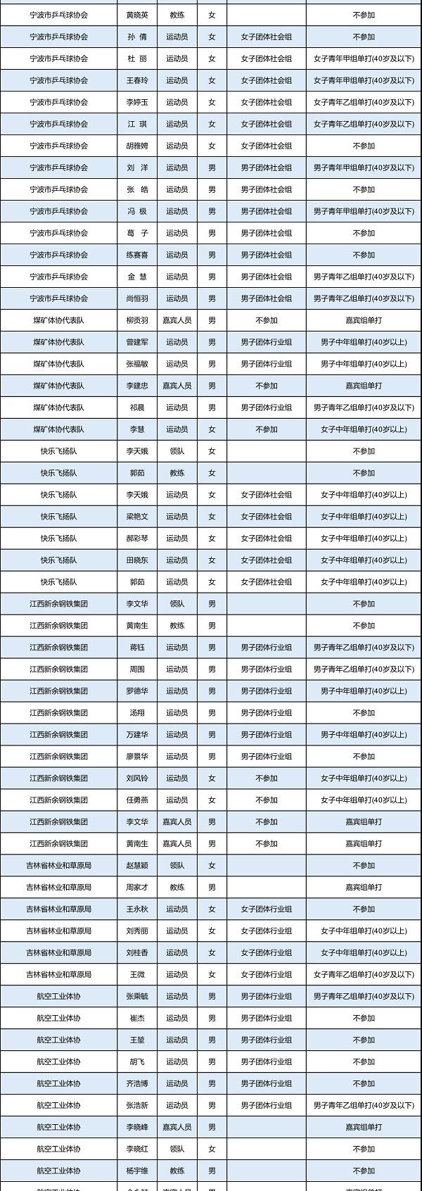 2020中国职工乒乓球联赛总决赛参赛名单公示