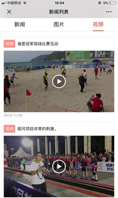 平台支持赛事视频直播,可为赛事直播生成推流和拉流地址、监播视频画面。同时提供视频点播回放、精彩镜头剪辑等功能服务,并可为各参赛代表团、相关组织单位提供订制化视频资料套餐。
