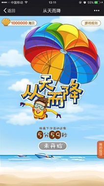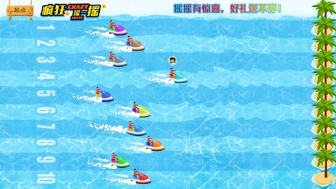 参与者事先选择小艇编号,通过摇动手机驱动小艇前进,先到终点者获奖。