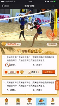 在职沙会比赛直播时,对正在直播的比赛题目进行实时竞猜,使用“海贝”投注,猜对可赢得“海贝”、兑换奖品。