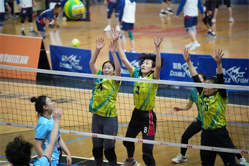 一传、二传、扣球、拦网……你追我赶、每球必争,现场加油声、呐喊声此起彼伏、响彻赛场。