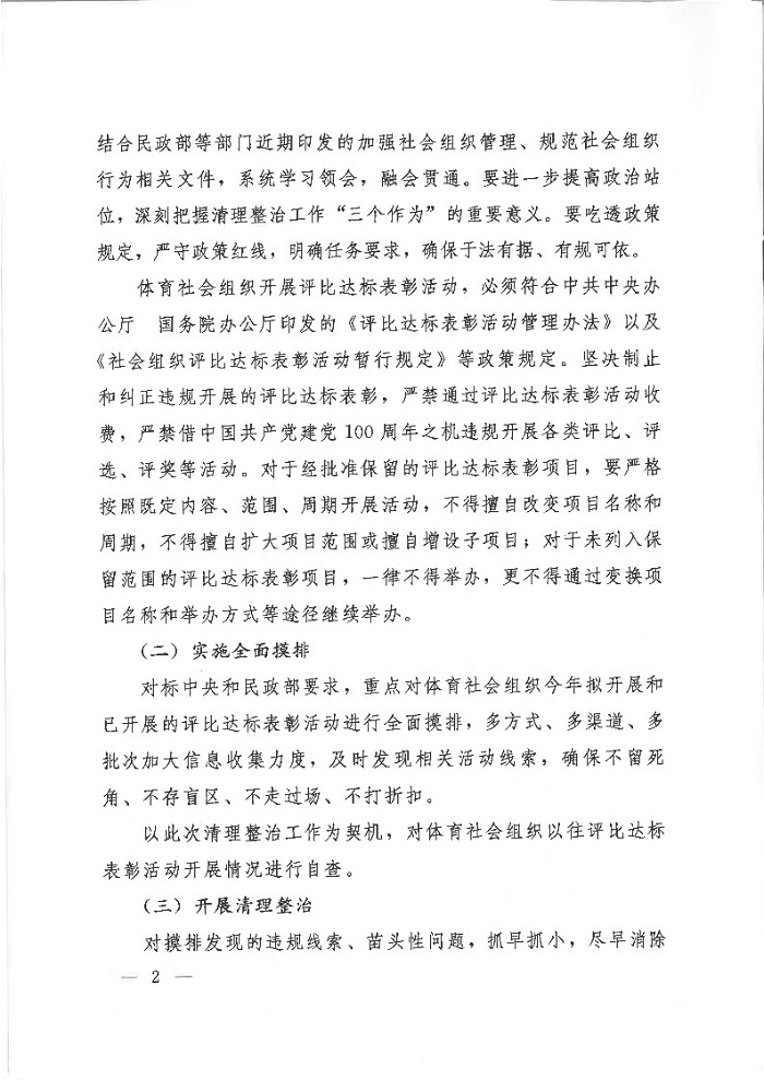 关于开展清理整治全国性体育社会组织违规评选评奖工作的通知