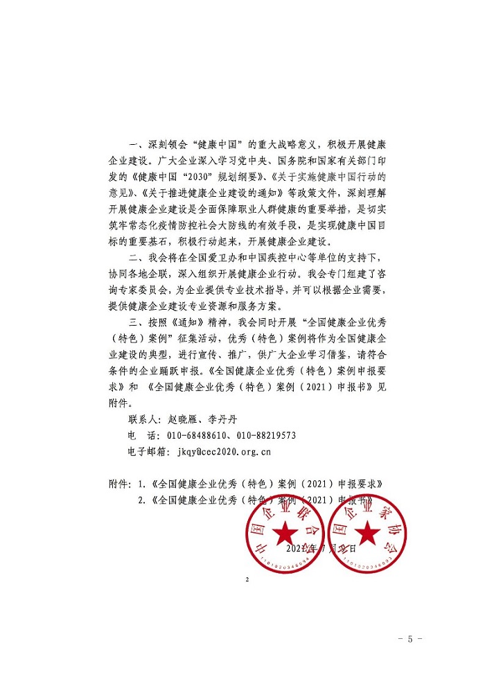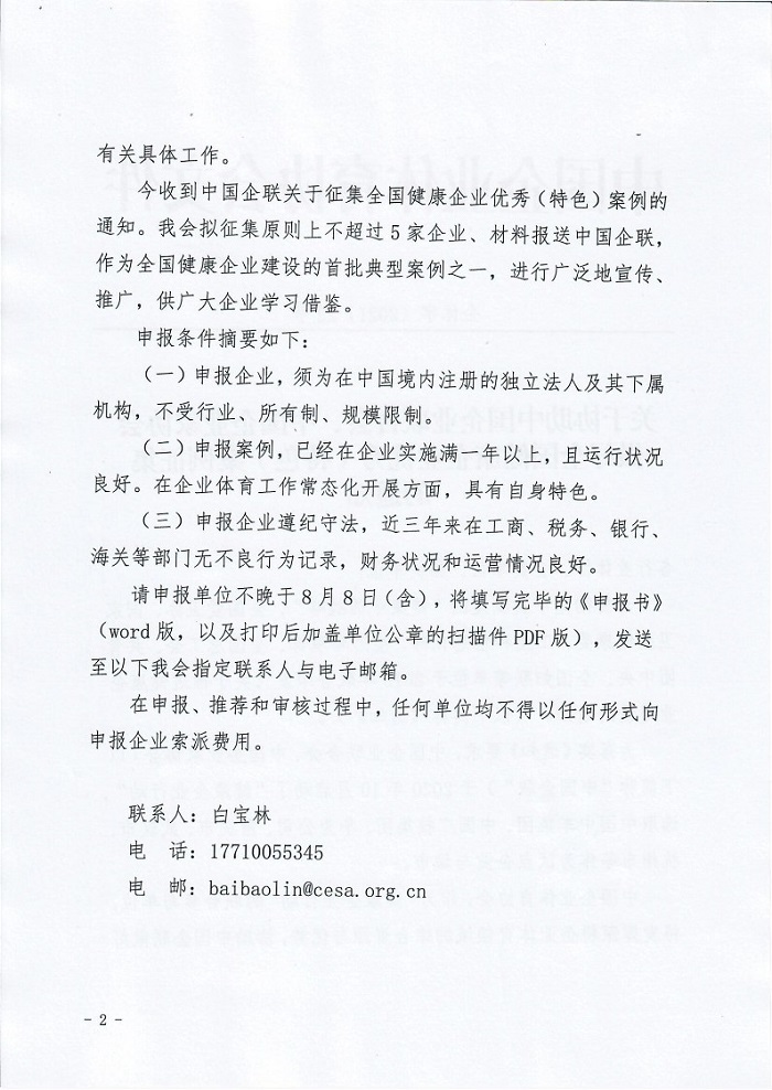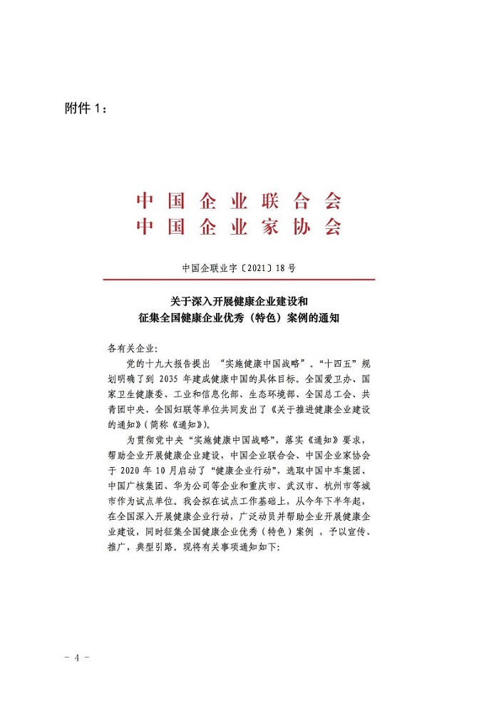 关于协助中国企业联合会、中国企业家协会做好全国健康企业优秀特色案例征集工作的通知