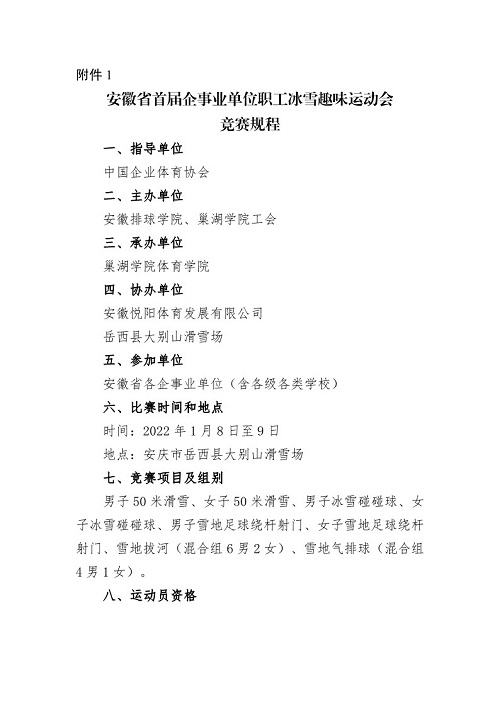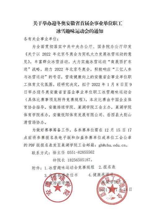 关于举办迎冬奥安徽省首届企事业单位职工冰雪趣味运动会的通知