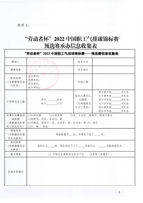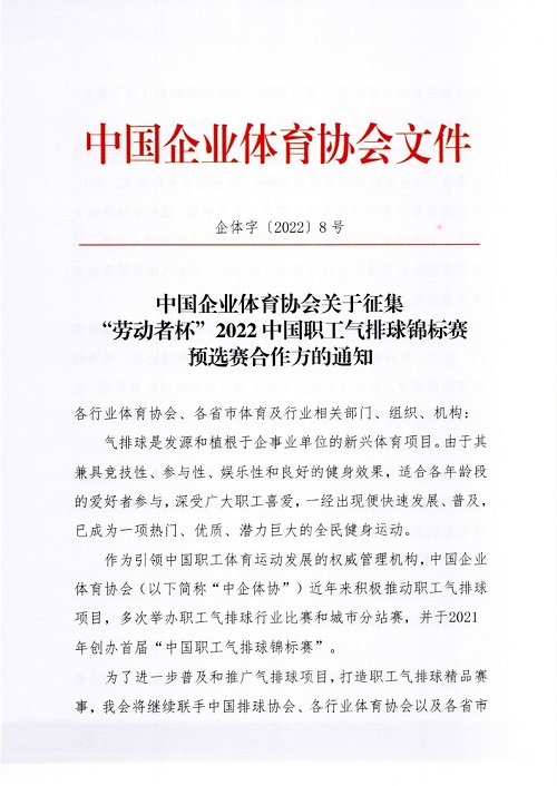 关于征集“劳动者杯”2022中国职工气排球锦标赛预选赛合作方的通知
