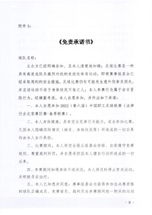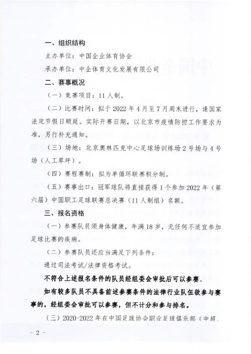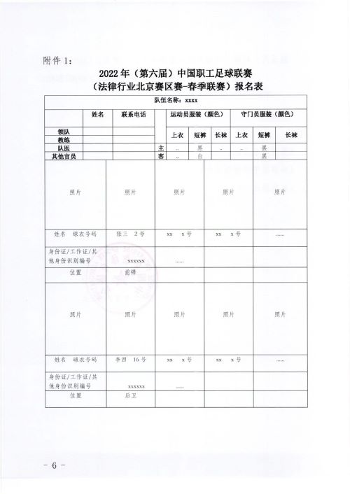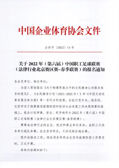 关于2022年(第六届)中国职工足球联赛(法律行业北京赛区赛-春季联赛)的报名通知