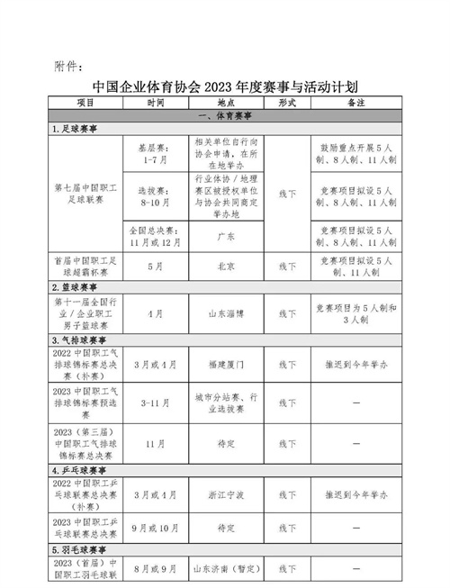 关于印发2023年度赛事与活动计划的通知