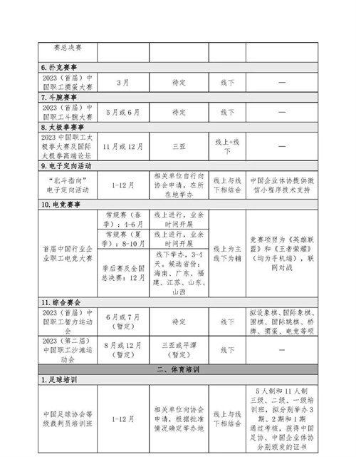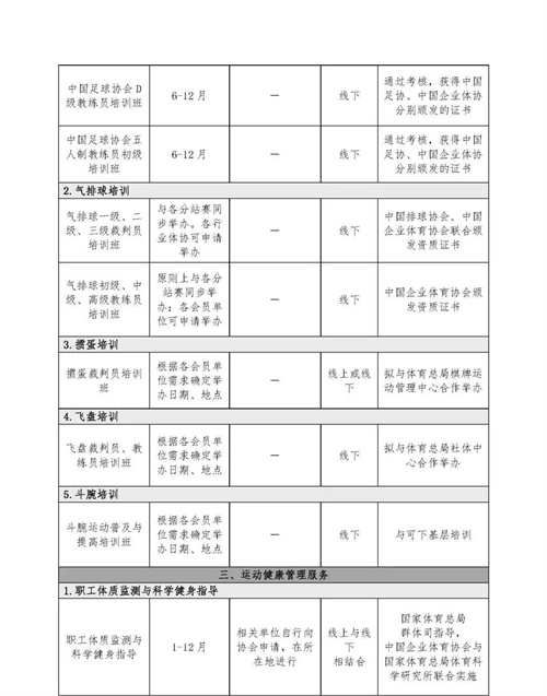 足球/篮球/电子定向/电竞/职工体质监测与科学健身指导/心意服务/健康中国企业行动体育专项行动业务事项,定向咨询请联系: